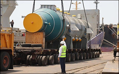 معاون بندری و اقتصادی ادارهکل بنادر و دریانوردی هرمزگان گفت : نگله بعدی با وزن ۱۲۳ تن با ۱۹ متر طول ، شش متر عرض و پنج متر ارتفاع و نگله دیگری نیز با وزن ۱۰۸ تن ، ۱۷ متر طول ، چهار متر عرض و شش متر ارتفاع تخلیه شد .