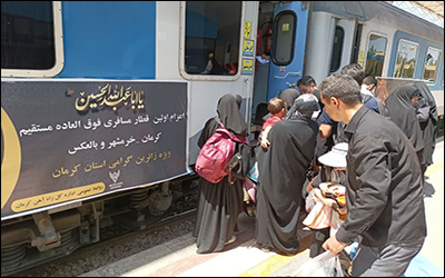 حسین معصومی گفت : در راستای تسهیل سفرهای زیارتی و رفاه حال زائران اربعین حسینی ، راه‌آهن کرمان برای اولین بار یک رام قطار فوق‌العاده در مسیر کرمان به خرمشهر و بالعکس راه‌اندازی کرده است . این قطار با سالن‌های چهار تخته طلاییه ویژه ، تجربه سفری ایمن و راحت را برای زائران استان کرمان در ایام پرشور اربعین فراهم می‌آورد .