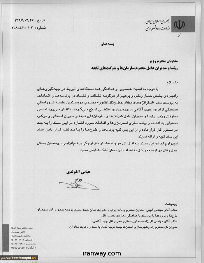 ابلاغ آیین نامه جدید مدیریت ایمنی و سوانح رانندگی به وزارت راه و شهرسازی 2