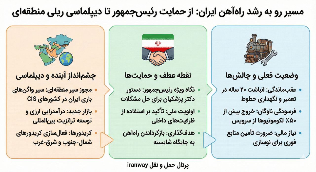 مسیر رو به رشد راه‌آهن با حمایت ویژه رئیس جمهور