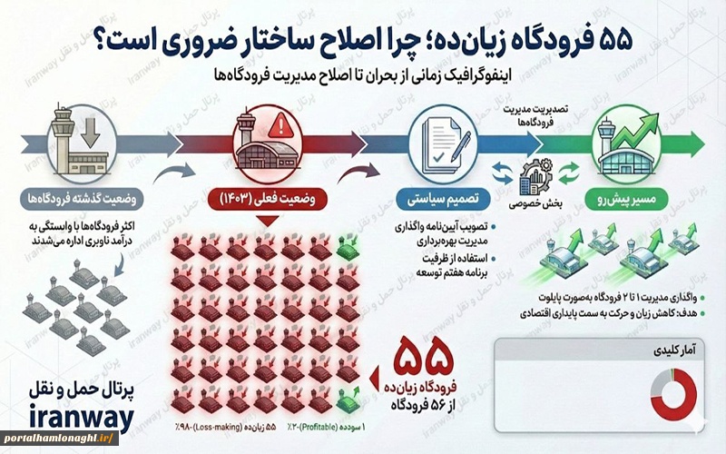 • از ۵۶ فرودگاه کشور ۵۵ فرودگاه زیان ده هستند